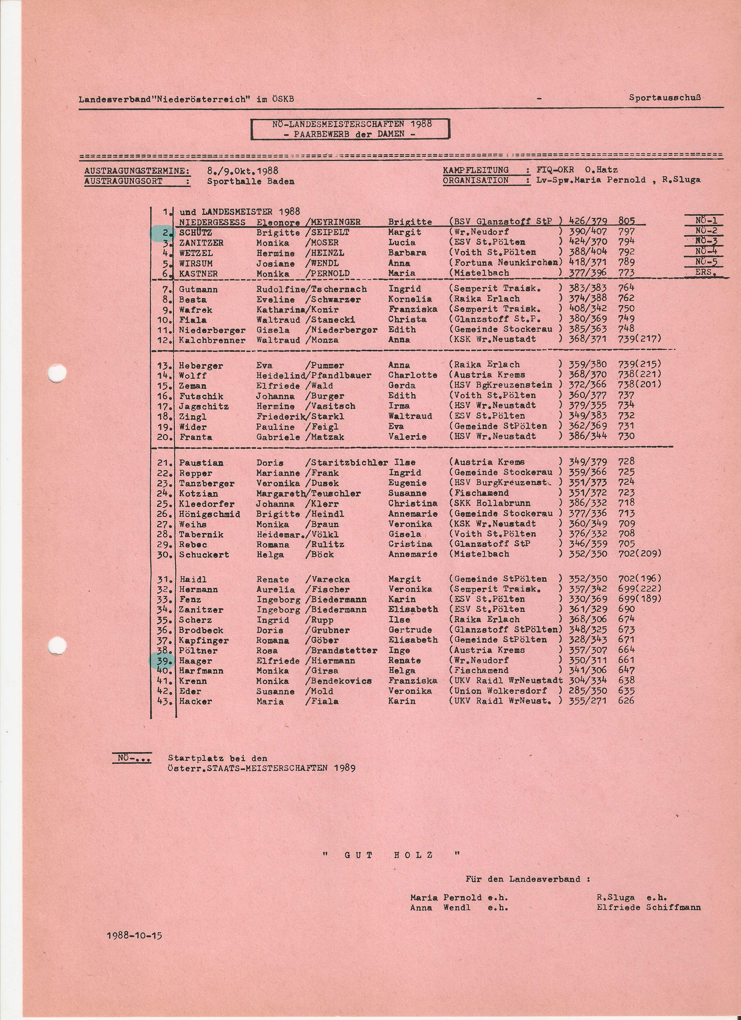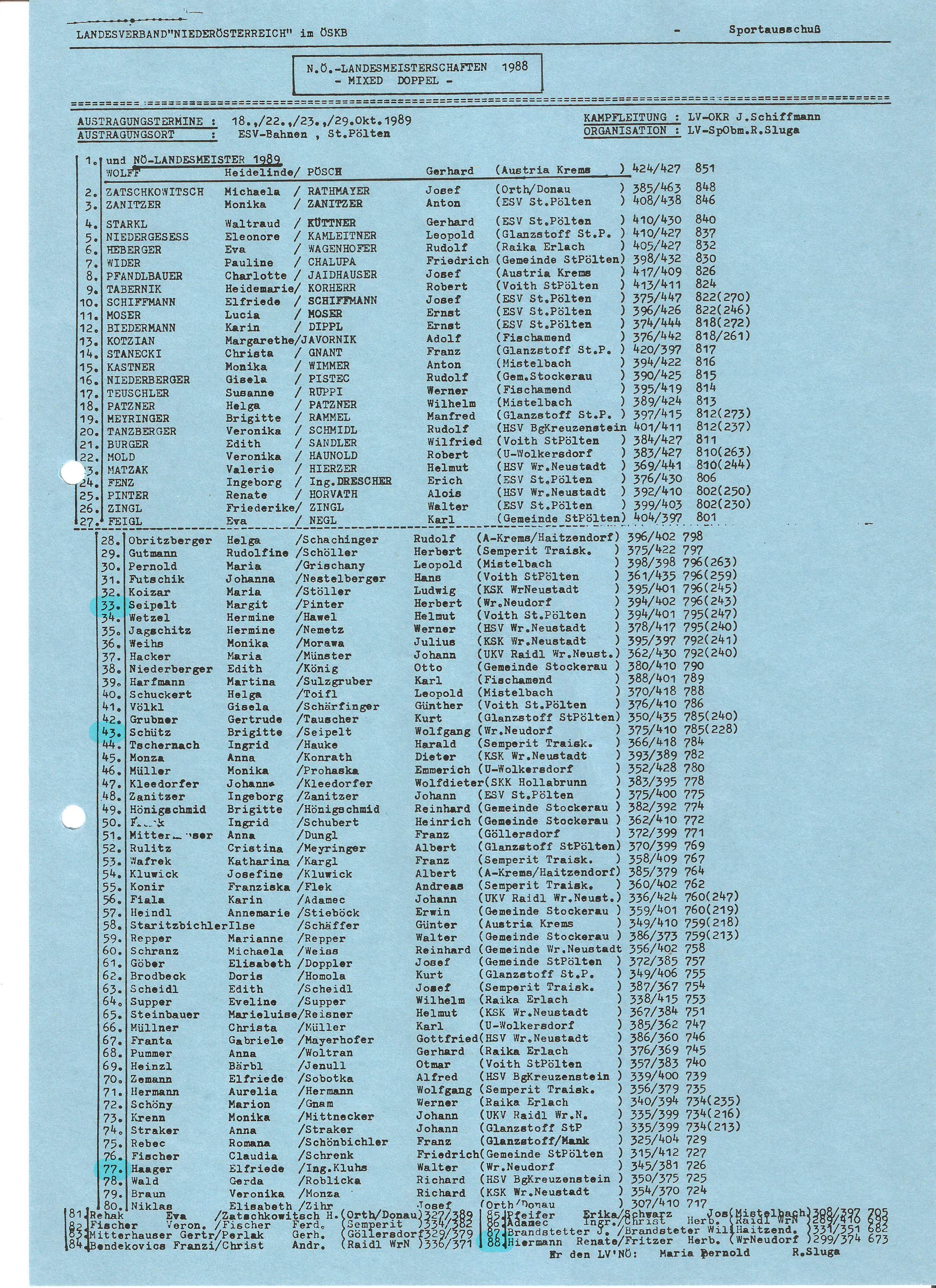 Seipelt Margit/Pinter Herbert (33), Schütz Bigitte/Seipelt Wolfgang (43), Hager Elfriede/Kluhs Walter (77), Hiermann Renate/Fritzer Herbert (88)