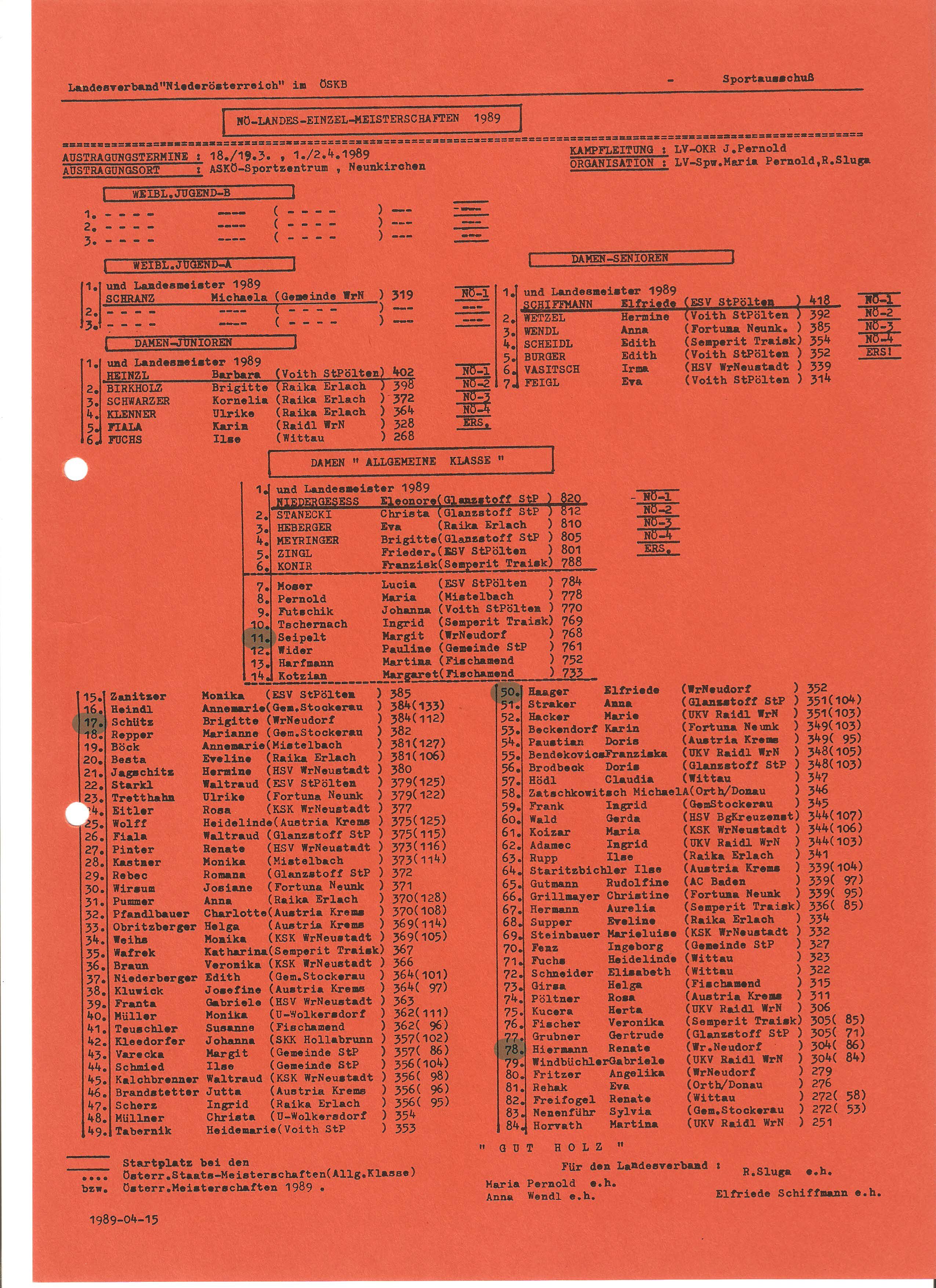 Seipelt Margit (11), Schütz Bigitte (17), Hager Elfriede (50), Hiermann Renate (78)